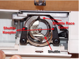 Once the bobbin case is out, you’ll see the shuttle area.